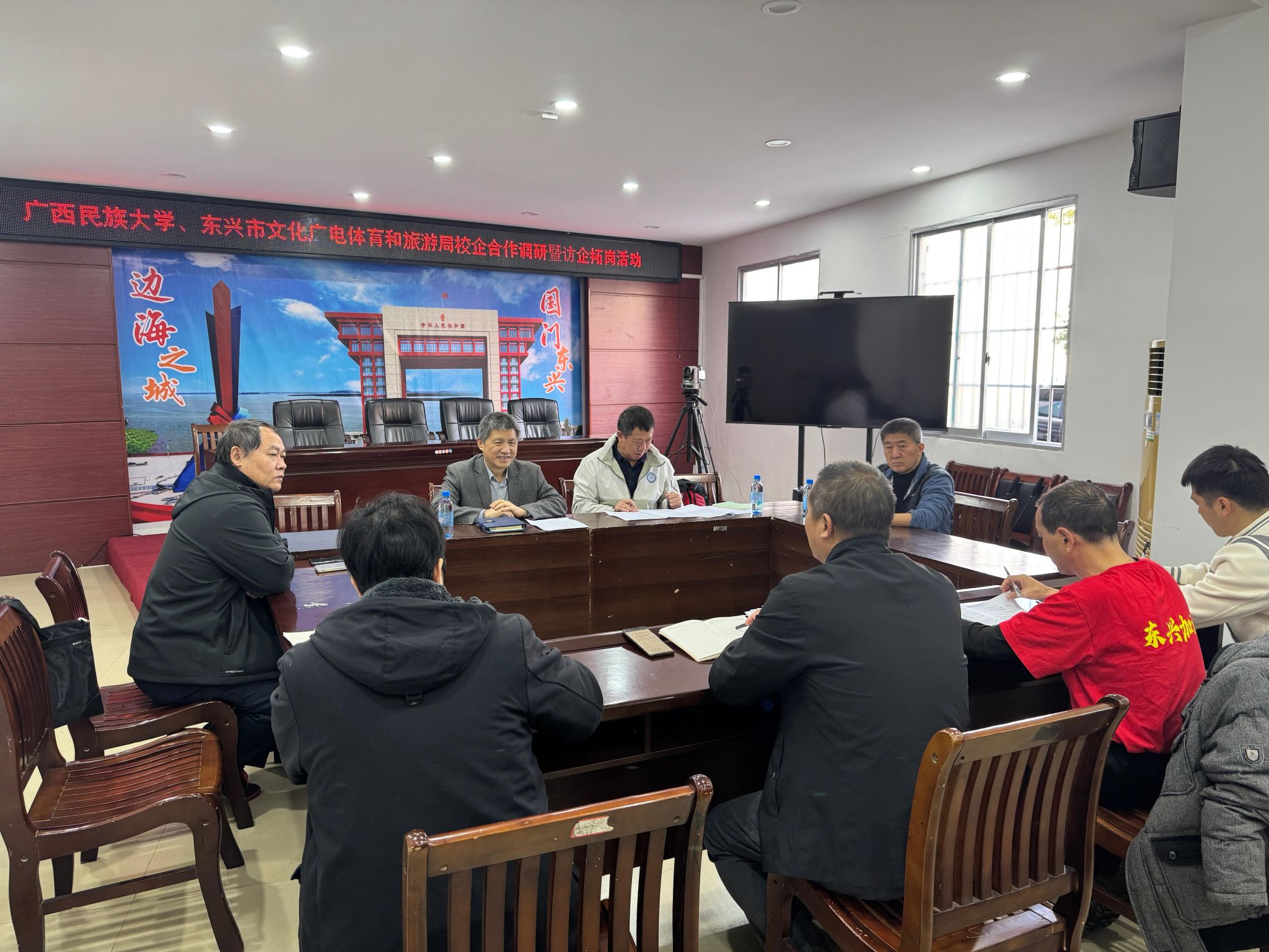28日,公司一行前往东兴市文化广电体育和旅游局开展专题调研,文化广电体育和旅游局局长范国庆、副局长谭傅文及相关负责人参加会议。会上,范国庆详细介绍了东兴市体育事业现阶段发展概况及跨境体育合作开展情况,他表示,期盼与高校在人才培养政策上加强协同,携手培育能够扎根当地、服务地方的高素质本土人才。谭傅文结合区域发展实际,建议双方共同探索多元化体育人才培养模式,协同推进大中小学人才衔接一体化建设试点。吕俊彪认真听取介绍后,细致询问了公司毕业生在东兴的工作与生活状况,并围绕如何进一步推动跨境体育交流合作等议题,与参会人员展开深入探讨。
