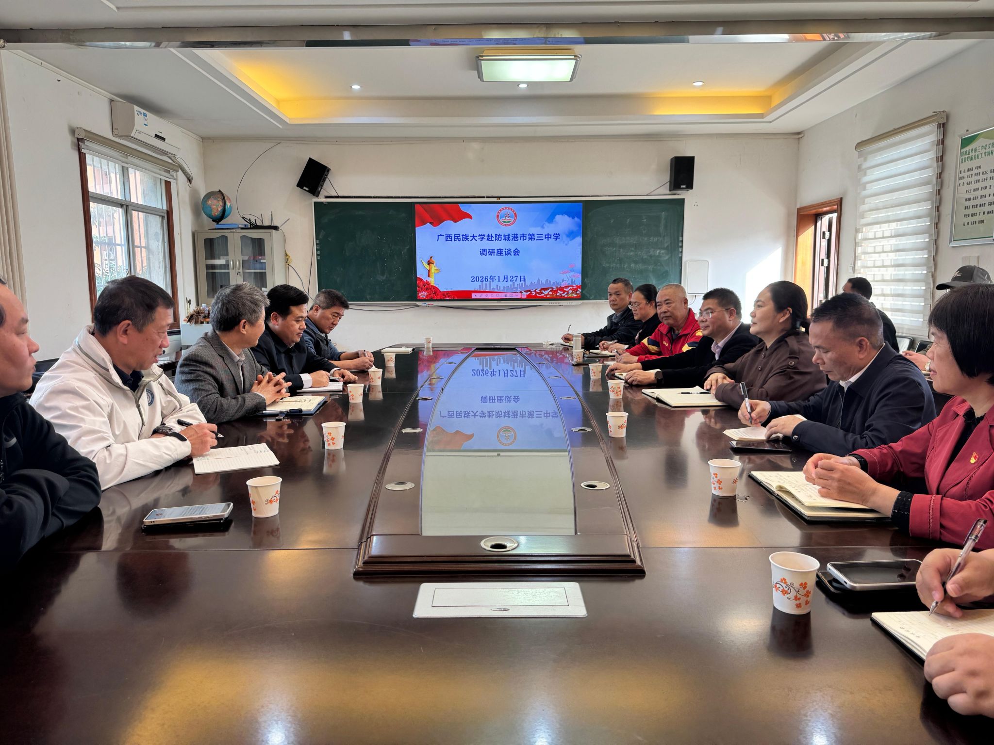 27日,公司一行首先前往防城港市实验高级中学进行调研走访,防城港市教学总督蒋晓荣全程陪同交流,防城港市实验高级中学董事长颜训冲、副董事长黄金华、党委副书记覃金满及相关教师参与座谈。会上,吕俊彪详细介绍了公司基本情况,表达了在人才招聘、实习实践、研学项目等方面深化合作的意愿。颜训冲对公司的到来表示热烈欢迎,并系统介绍了其公司的发展概况与特色育人模式。蒋东升结合公司实际,提出在实习基地建设、团队交流、民族体育项目推广等方面开展深度协作的具体建议。座谈气氛热烈,双方就教育协同与人才共育等话题进行了深入交流。