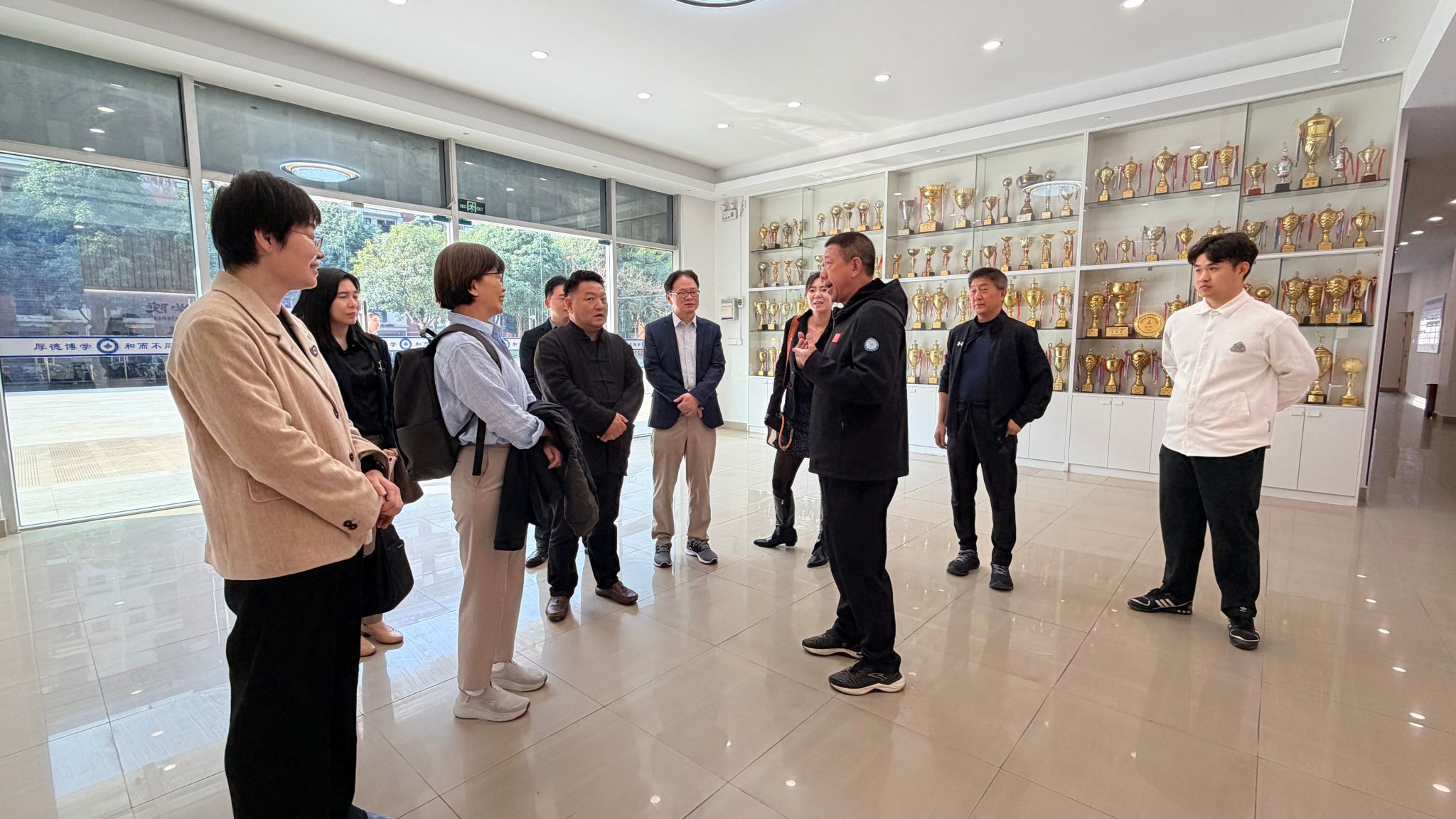 蒋东升对代表团的到访表示热烈欢迎,并详细介绍了公司的发展历程、学科布局、团队力量及近年来在体育竞赛、社会服务等领域取得的突出成绩。他强调,公司依托完善的体育场馆设施和多个区级教学科研平台,在民族传统体育、运动训练、健康促进等领域形成了鲜明的办学特色。蒋东升表示,期待通过此次交流,借鉴双方优势,为深化国际产学研合作奠定坚实基础。